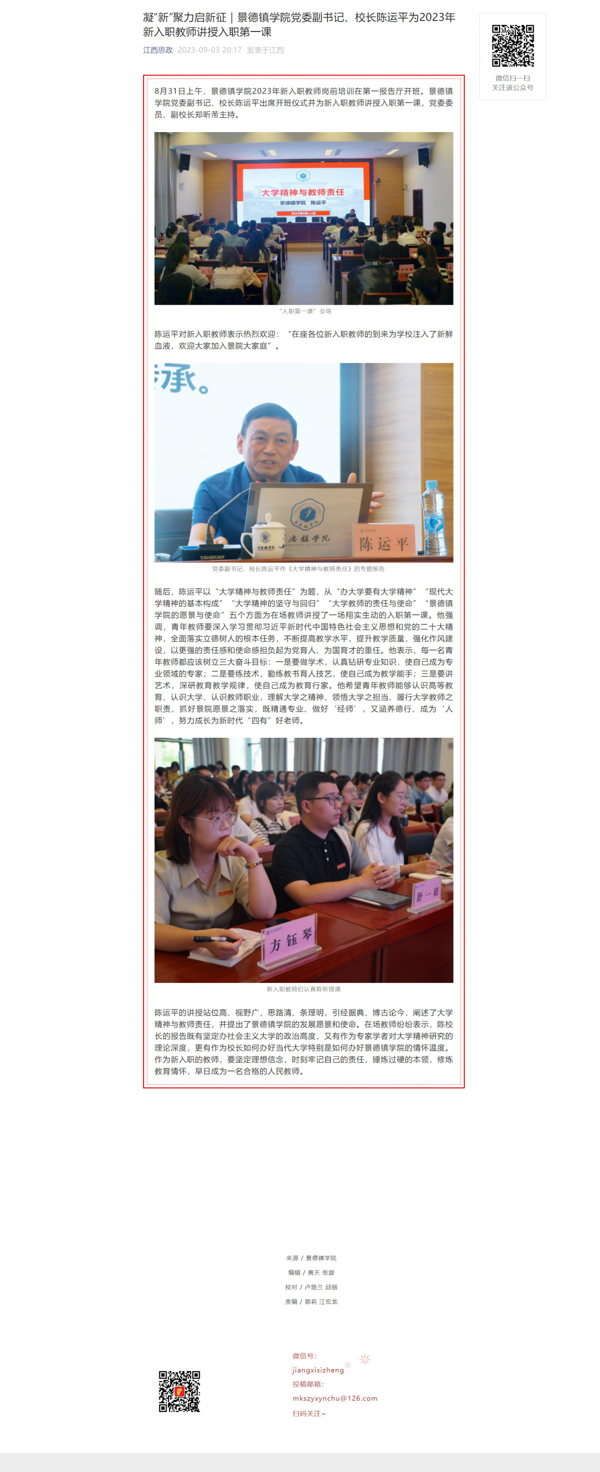 江西思政:凝“新”聚力启新征|景德镇学院党委副书记、校长陈运平为2023年新入职教师讲授入职第一课