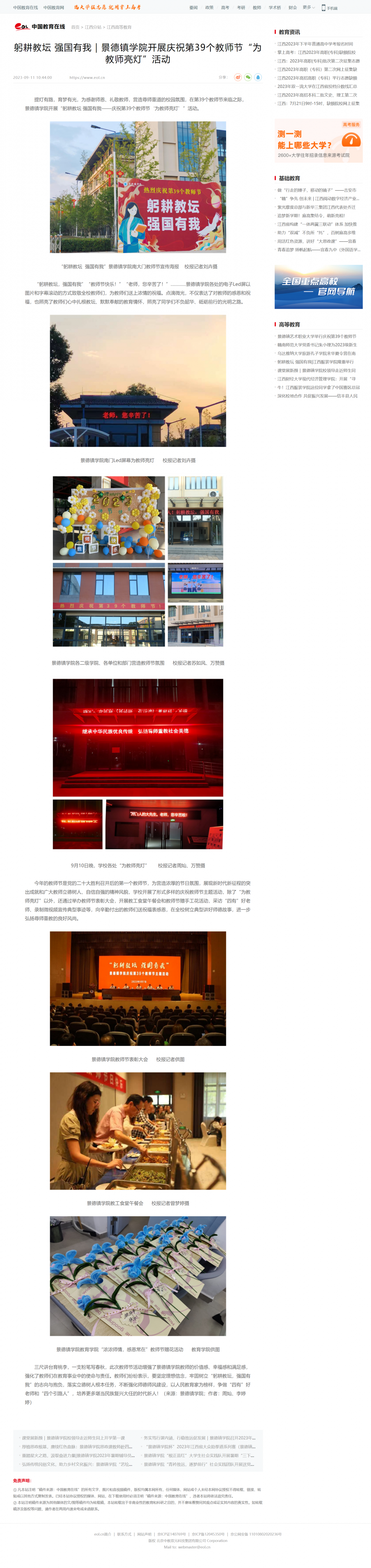 中国教育在线:躬耕教坛 强国有我|景德镇学院开展庆祝第39个教师节“为教师亮灯”活动