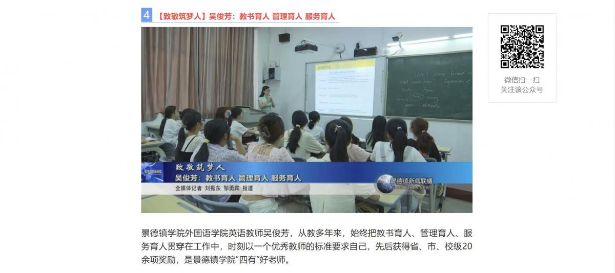 景德镇广播电视台:【致敬筑梦人】吴俊芳:教书育人 管理育人 服务育人