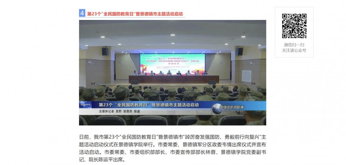景德镇广播电视台:第23个“全民国防教育日”暨景德镇市主题活动启动