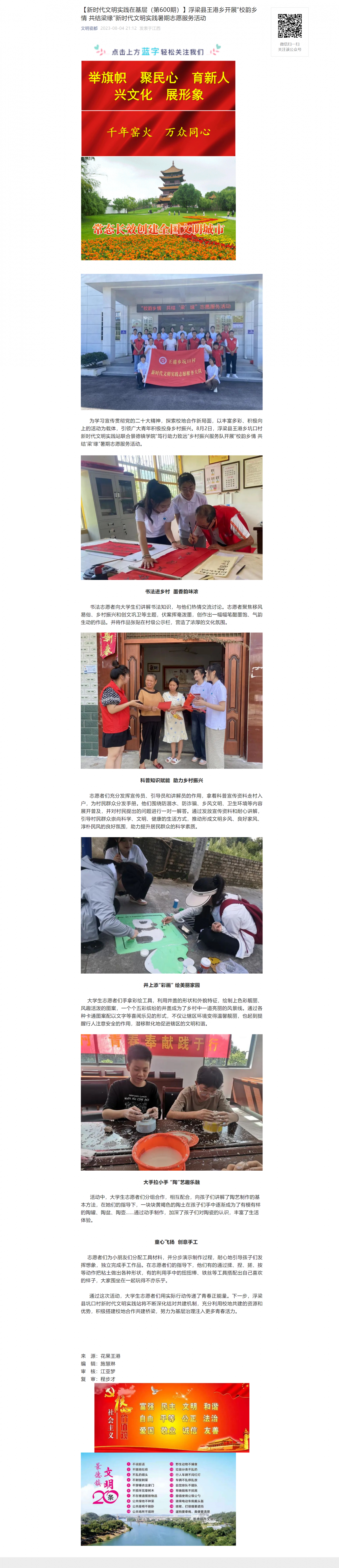 文明瓷都:【新时代文明实践在基层(第600期)】浮梁县王港乡开展“校韵乡情 共结梁缘”新时代文明实践暑期志愿服务活动