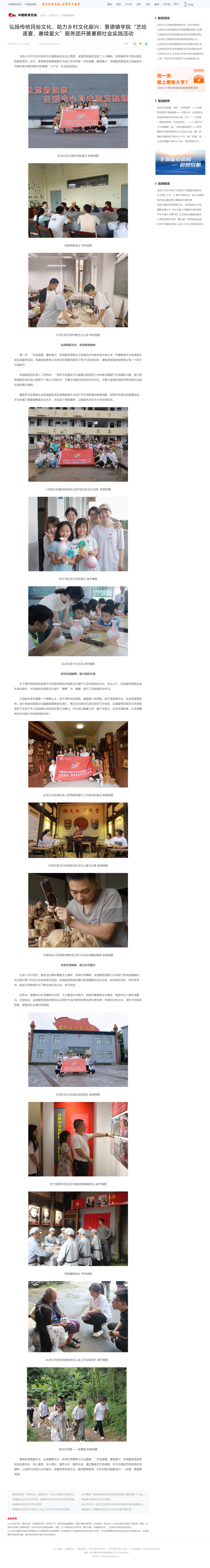 中国教育在线:弘扬传统民俗文化,助力乡村文化振兴:景德镇学院“艺绘逐夏,赓续星火”服务团开展暑期社会实践活动