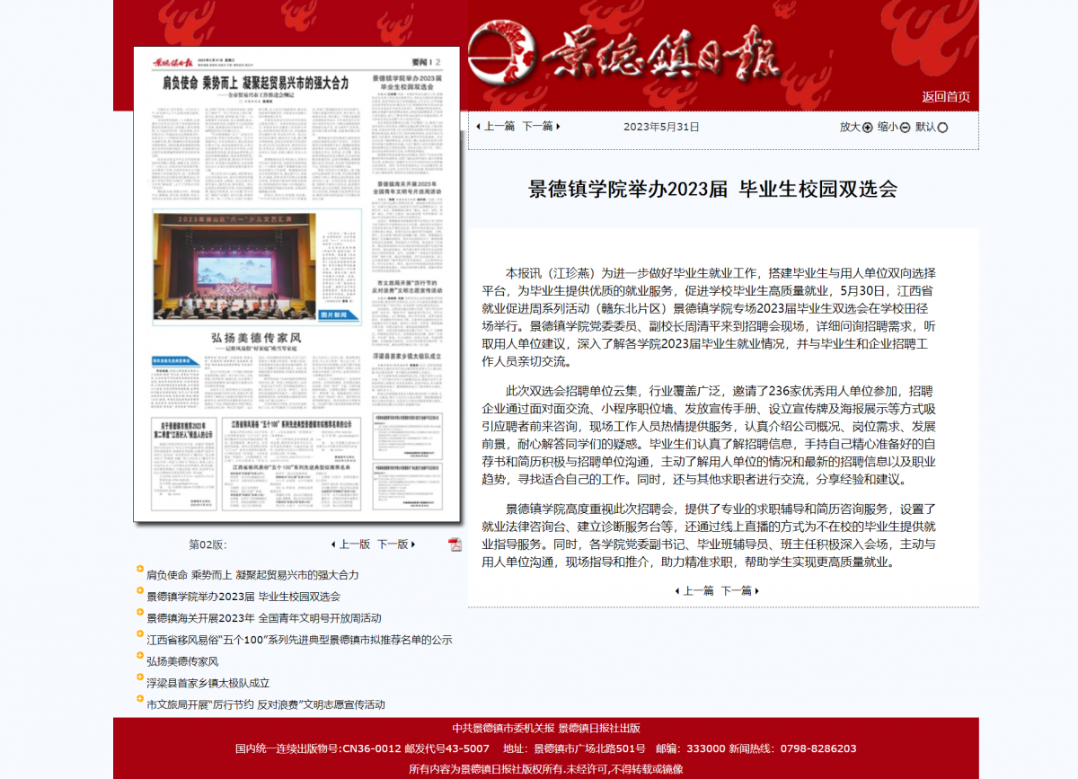 景德镇日报:景德镇学院举办2023届 毕业生校园双选会