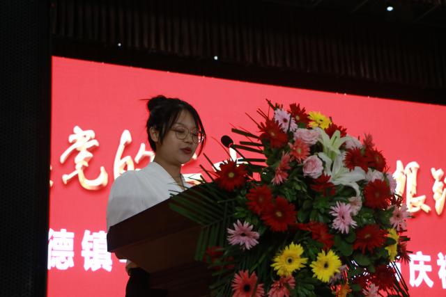 与会领导为受表彰的先进集体和先进个人颁奖。马克思主义学院教师赵娜带领全体新入职教师进行宣誓,教师代表李珍真和新入职教师代表陈璐分别发言,学生代表程文熠代表全校学生献辞。