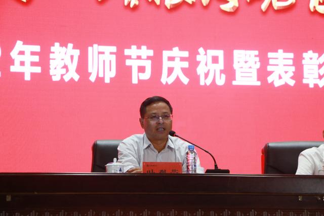 他指出,百年大计,教育为本;教育大计,教师为本。习近平总书记对广大教师非常重视和关心,每年教师节都会前往学校看望师生,致信祝贺问候,为全党做出了尊师重教的表率。教育部、省教育厅就如何做好庆祝教师节专门下发通知,要求各级党委和政府、全社会大力弘扬尊师风尚,以昂扬向上的精神面貌和扎实行动迎接党的二十大胜利召开。